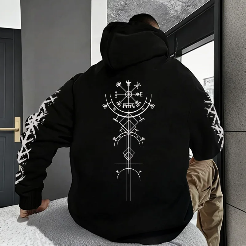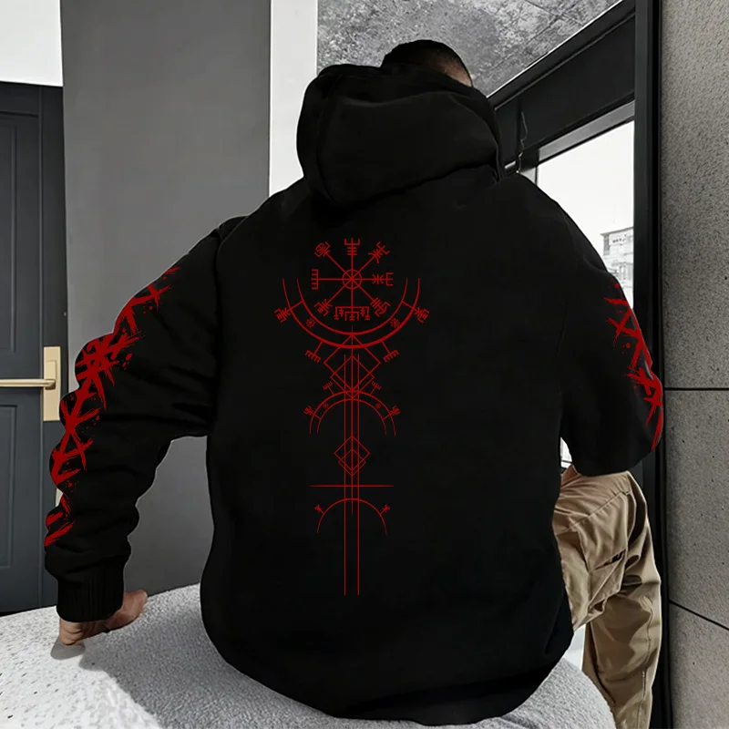 🔥 2025 Men's Solid Hoodie – Sleek athleisure design with logo print for gym, street, or home versatility.